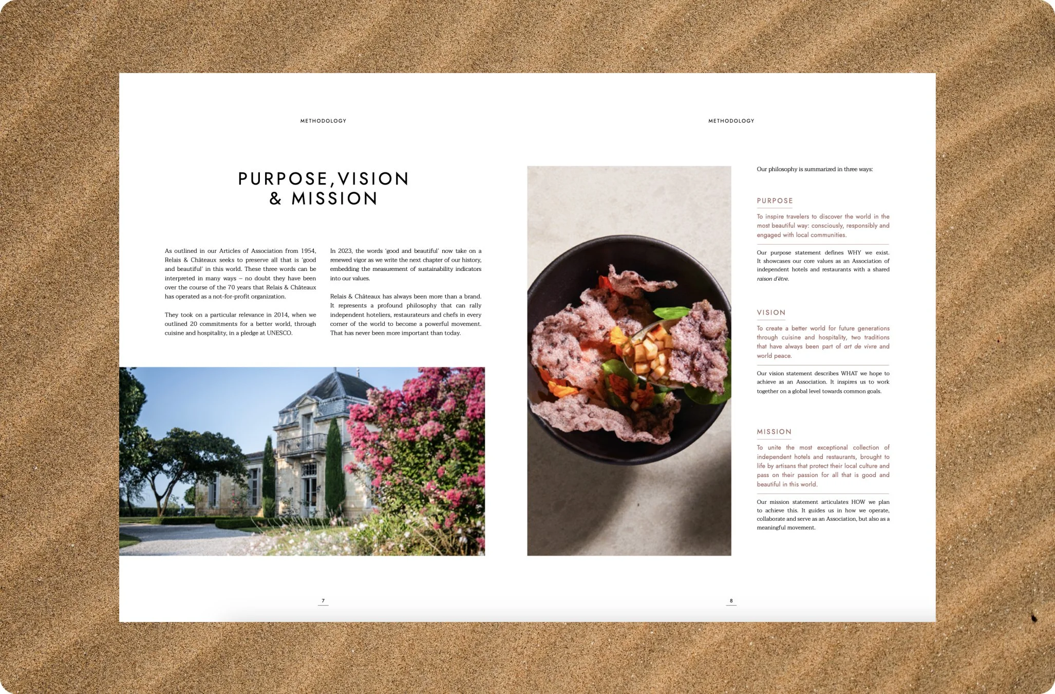 Ma première mission en tant qu’alternante chez l’agence Seenk à été la mise en page du rapport de développement durable 2022 pour la marque Relais & Châteaux. En collaboration avec le client, nous avons poser la trame et les grands principes de mise en page, puis nous avons intégré les contenus. L’année suivante, j’ai travaillé sur la version de 2023.
